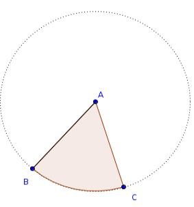 A circular sector is the figure contained by two radii of a circle and the arch between them. The angle $\angle{BAC}$ is called a central angle.