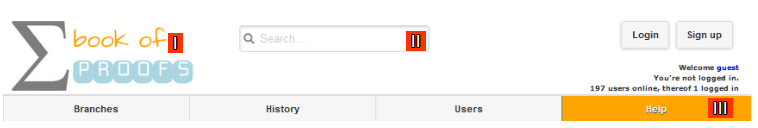 - (c ) This icon is only visible for axioms, definitions, theorems, corollaries, propositions, and lemmata. It opens a list of all axioms needed to derive the entry, the logical predecessors, and the logical successors of the entry. This is what in BookOfProofs is called the axiomatic method.